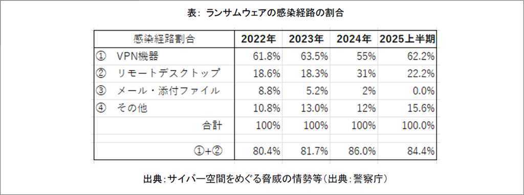 情報セキュリティ10大驚異2026 組織編解説書より ランサムウェアの感染経路の割合